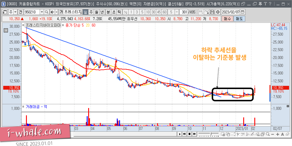 그래서 저는 조금이라도 아쉬움을 달래려 프레스티지바이오파마를 기준으로 기준봉 매매법에 대해 알려드리려 합니다.