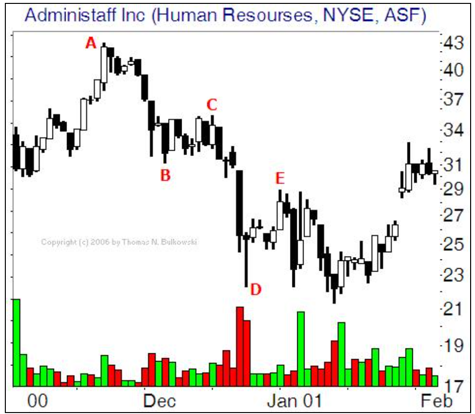 - 두 번째 하락은 D 지점에서 끝나고,