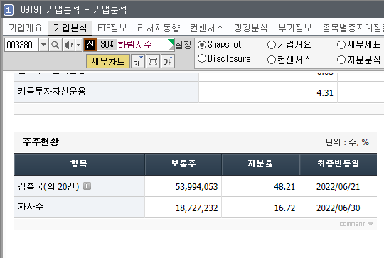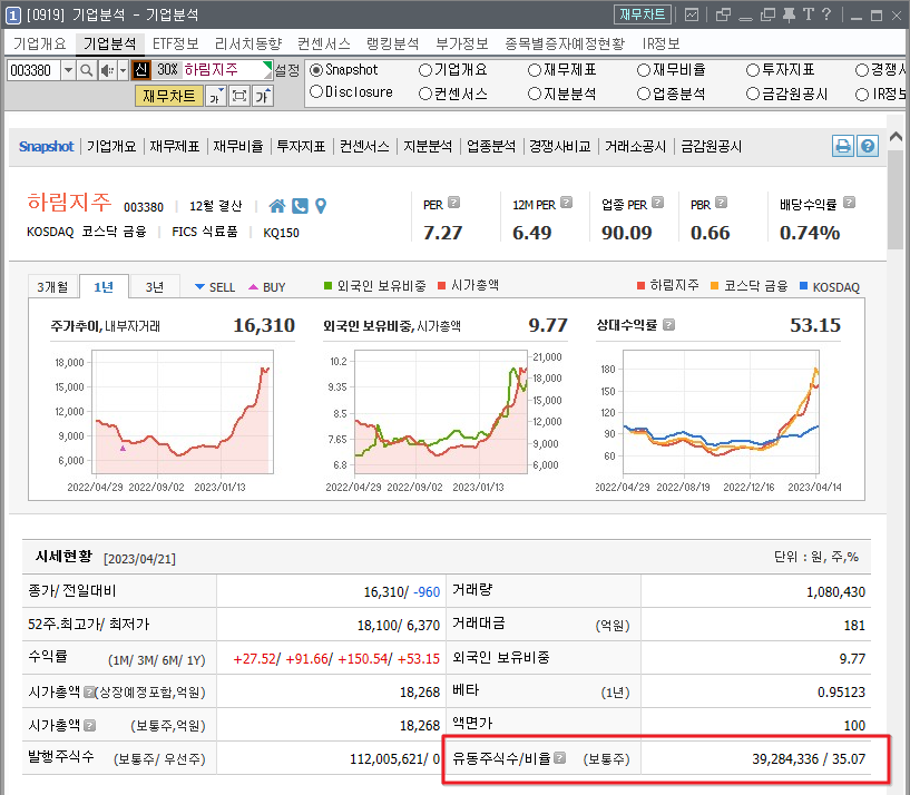 유통 주식 수 확인하기, [0919] 기업 분석 화면