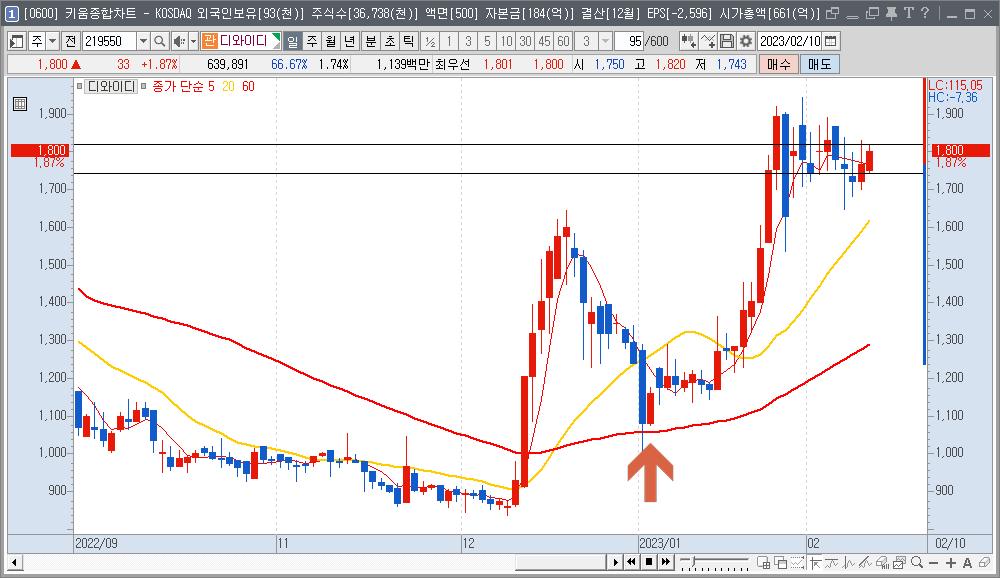 2023.02.12 - [주식 패턴] - 흑삼병 매매기법 (상승 예상 종목, 윈텍, 디딤이앤에프, 일정실업, 디와이디)
