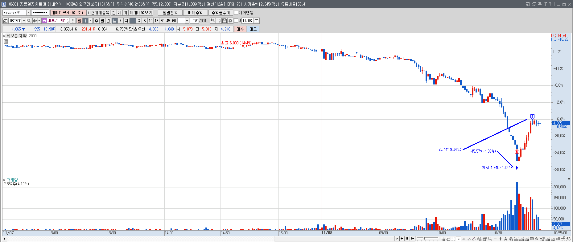 마디까지 추가 상승 해야 하는데 상승흐름 및 호가 체결속도가 늦어져서 매도 처리.