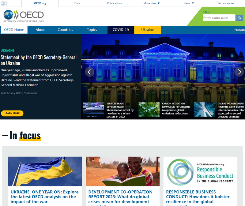 OECD 사이트에서는 회원국들의 경제 지표, 무역, 기술, 과학, 교육, 환경 등의 데이터와 분석 보고서를 제공하고 있으며