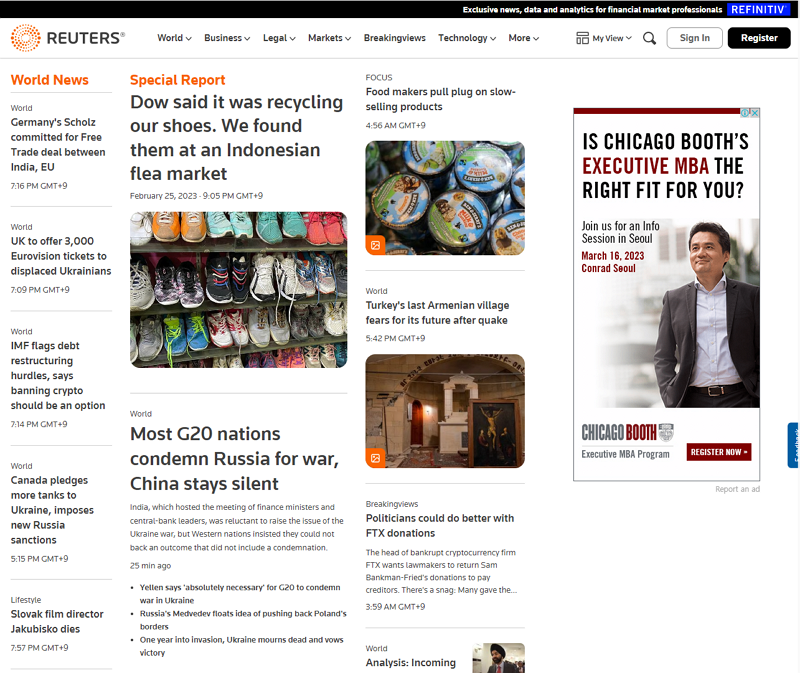 뉴스 에이전시로, 경제 및 금융 관련 뉴스를 제공하는 사이트입니다. (https://www.reuters.com/)