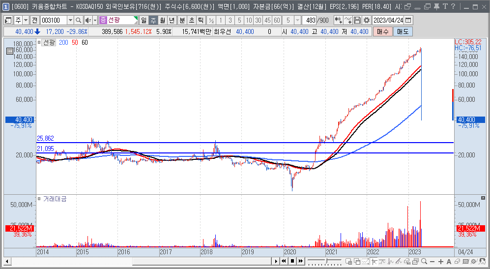 선광은 40,500원 부근으로 분석을 했었습니다.