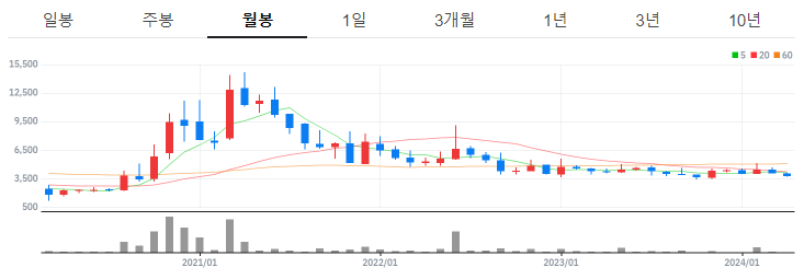 기술적 지표 분석에서, RSI, Williams %R, stochastic(%K) 지표는 모두 중립 신호를 나타내며, MACD 지표는 매수 신호, CCI 및 stochRSI 지표는 매도 신호를 보여 주가의 변동성을 나타내고 있으며 회귀 분석을 통한 주가 움직임 예측 결과, 단기적으로는 하락할 것으로 예상되나, 일정 기간 동안의 조정 이후 상승할 가능성이 있음을 시사되고 있다고 볼 수 있습니다. 월봉상으로는 리스크가 있어 보이는 자리입니다. 그러나 월급채굴기는 매수했는데 결과는 어떻게 될까요? ^^