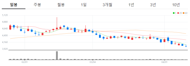 기술적 지표 분석에 따르면, RSI, Williams %R, stochastic(%K) 지표는 중립적인 신호를 나타내고 있으며, MACD 지표는 매수 신호를 보여주고 있습니다. 시장의 관심도와 함께 주가의 향후 움직임에 대한 다양한 시그널을 제공하는 것으로 보여지는데 4,000원대 돌파여부가 관건이라 할 수 있겠습니다.