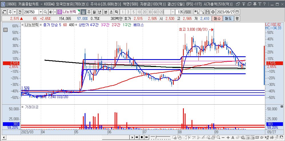 | 2023-08-03 | 286750 | 나노브릭 | 2,460 | 3/4 | 진단 키트,보안주 (정보) |
