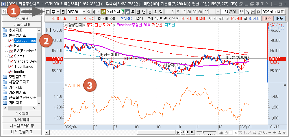 - "변동성지표" > "Average True Range"를 클릭합니다.
