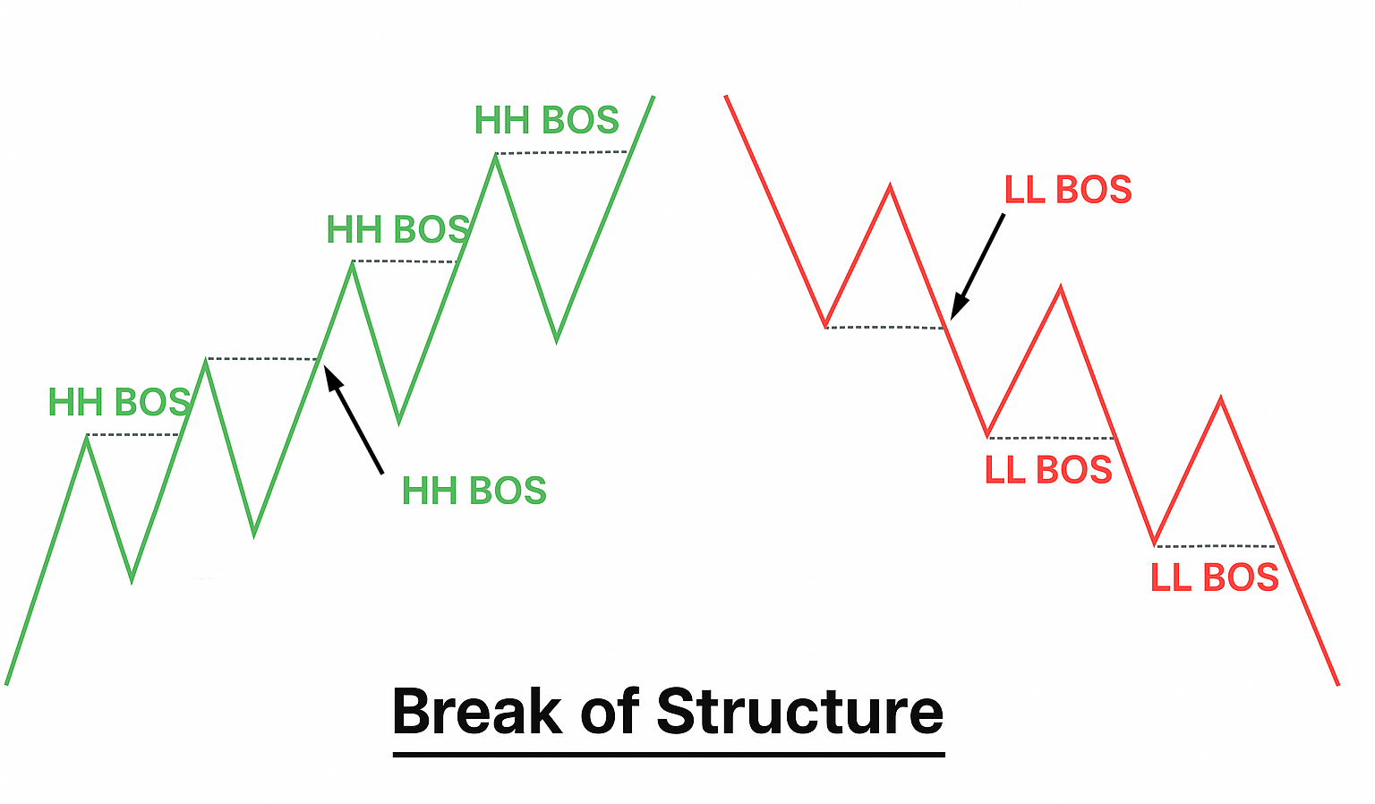 - 구조가 바뀌는 순간이 기회다 → BOS (Break of Structure), CHoCH (Change of Character) 포착