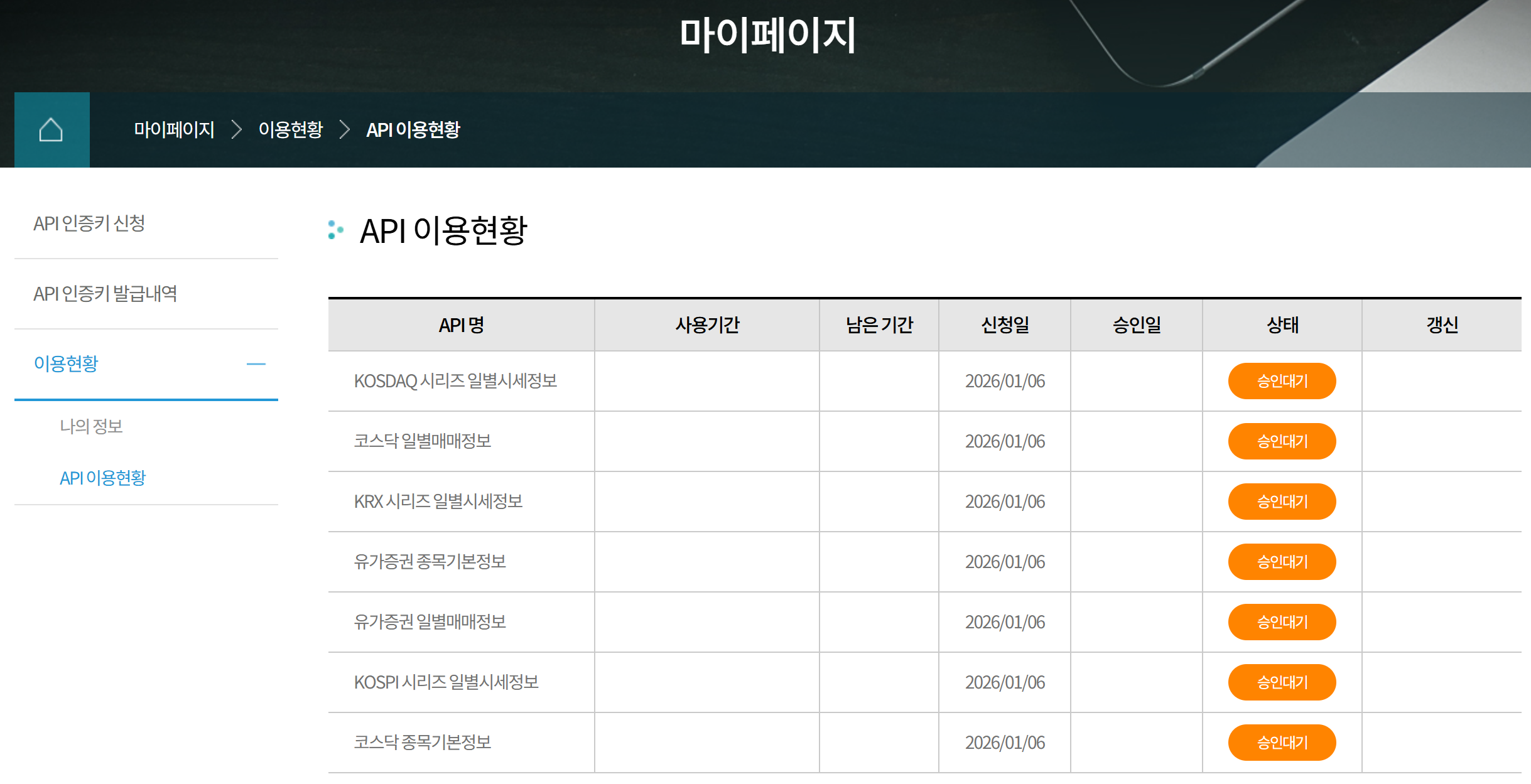 - API 이용현황이 아직 “승인대기”