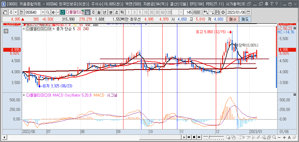 그럼 다른 종목도 잘 맞는지 확인할 필요성이 있을 것 같네요. 다믈멀티미디어를 보도록 하죠.