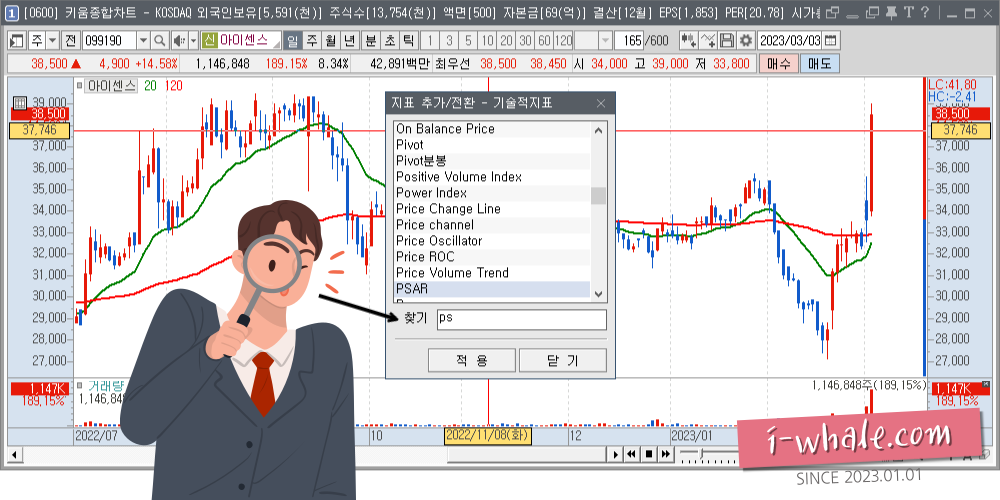 그러면 "찾기" 부분에 "ps"라고 입력만 해주시면 Parabolic Stop And Reverse의 약자인 "PSAR"이 나옵니다.