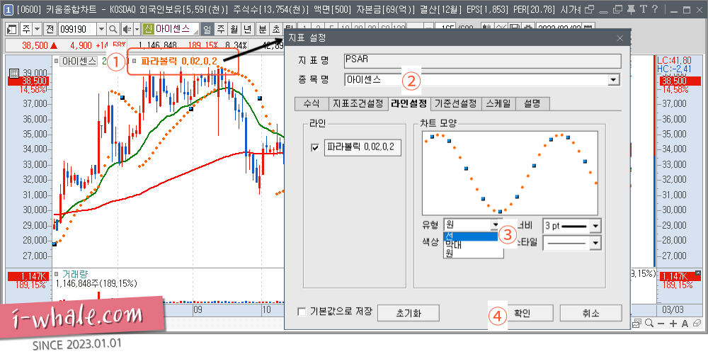 키움 영웅문 HTS 수식관리 완벽 정리 (feat. 파라볼릭 SAR 지표 스타일 변경)